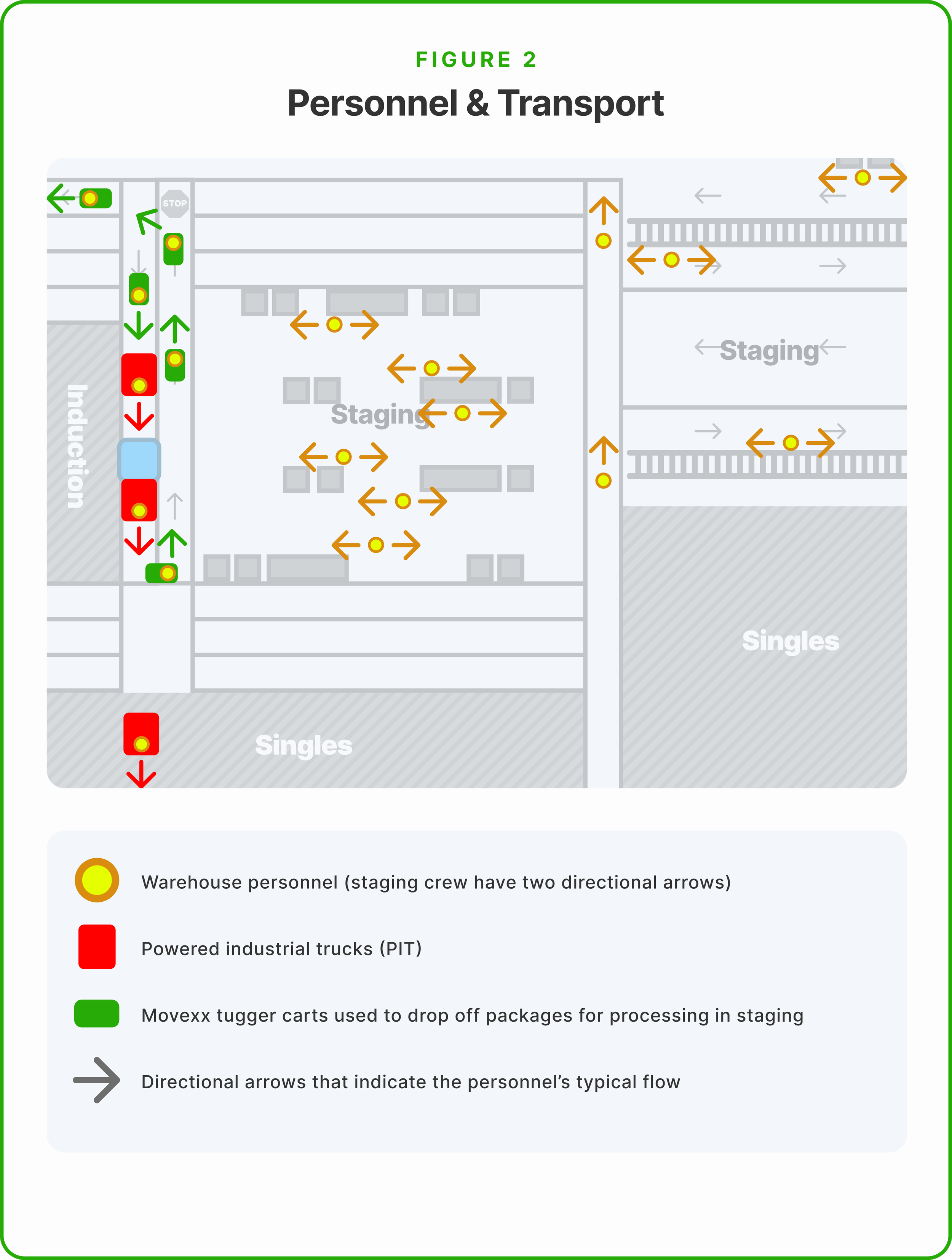Senior leadership mandated separating powered industrial trucks (PITs) from Movexx cart traffic in staging—a safety-driven decision that made sense on paper. But the initial implementation created chaos: confused team members, traffic jams, and plummeting quality as boxes moved through staging 35% faster without adequate checks.