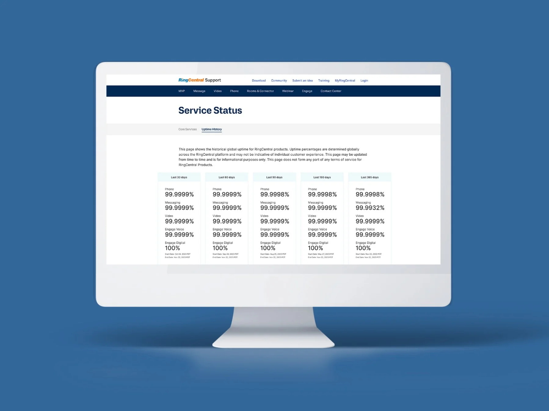 I was given one day to design a web page that would clearly display RingCentral’s uptime data so that potential customers could more accurately compare their metrics to that of the competition’s.