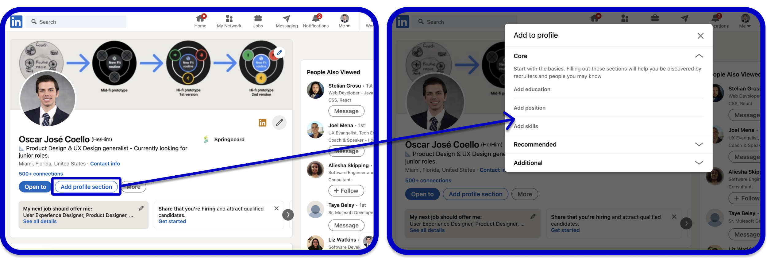 My team wanted to make our app appealing to tech-savvy professionals, so I looked at LinkedIn. I really appreciated LinkedIn's collapsable menu and the ability to choose what sections to add to the user's profile.