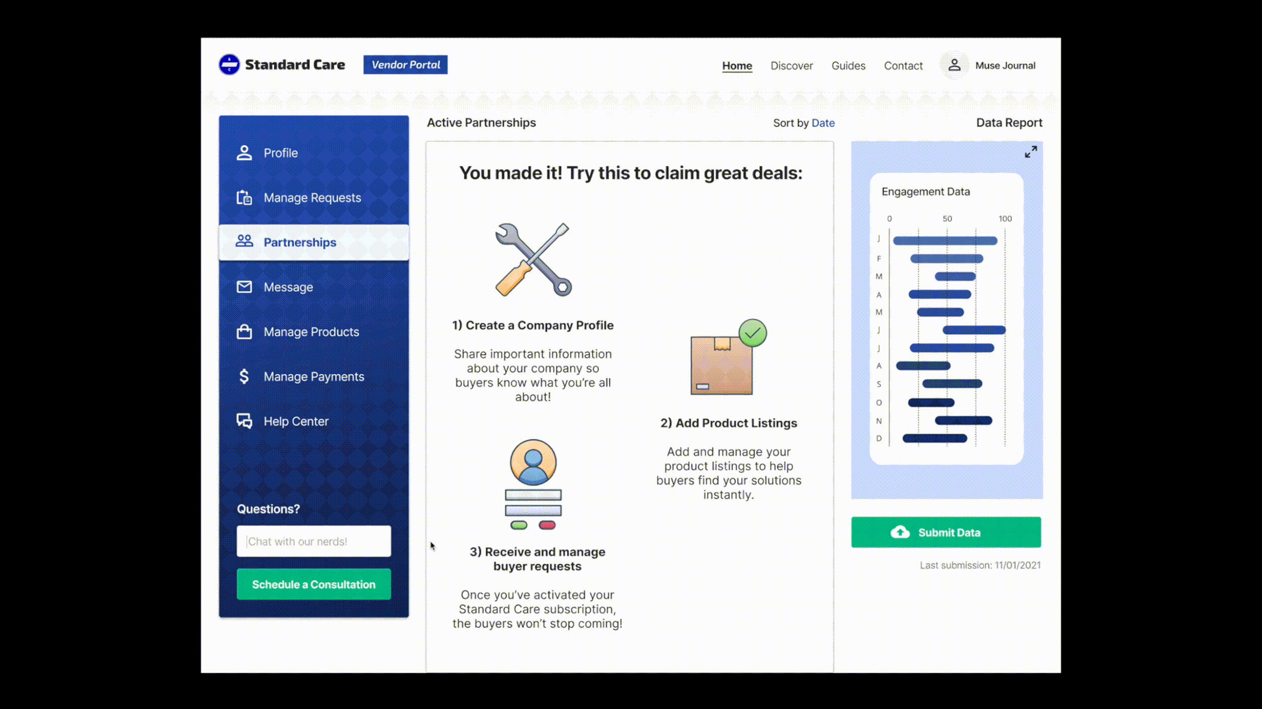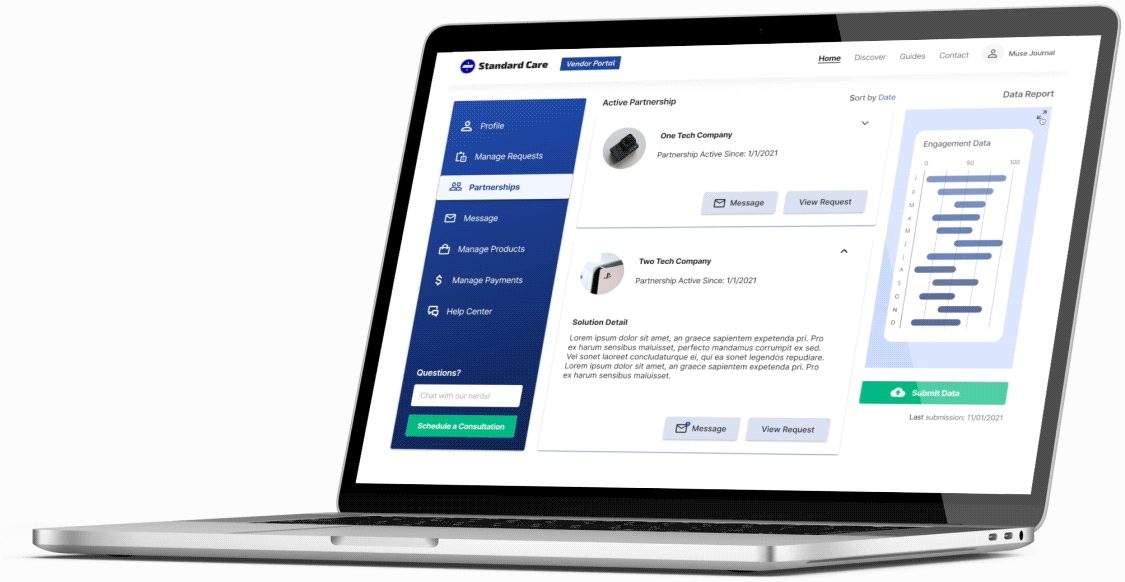 Introducing the new Standard Care Vendor portal, an enterprise app that allows providers share their digital products and services in an open marketplace, manage requests from buyers, and track their real-time engagement data all in one place.