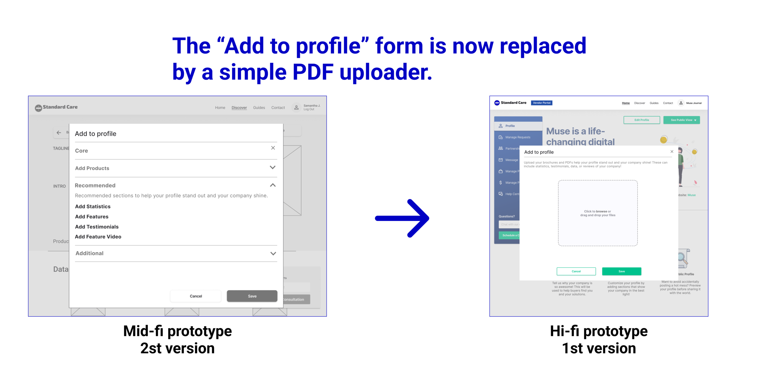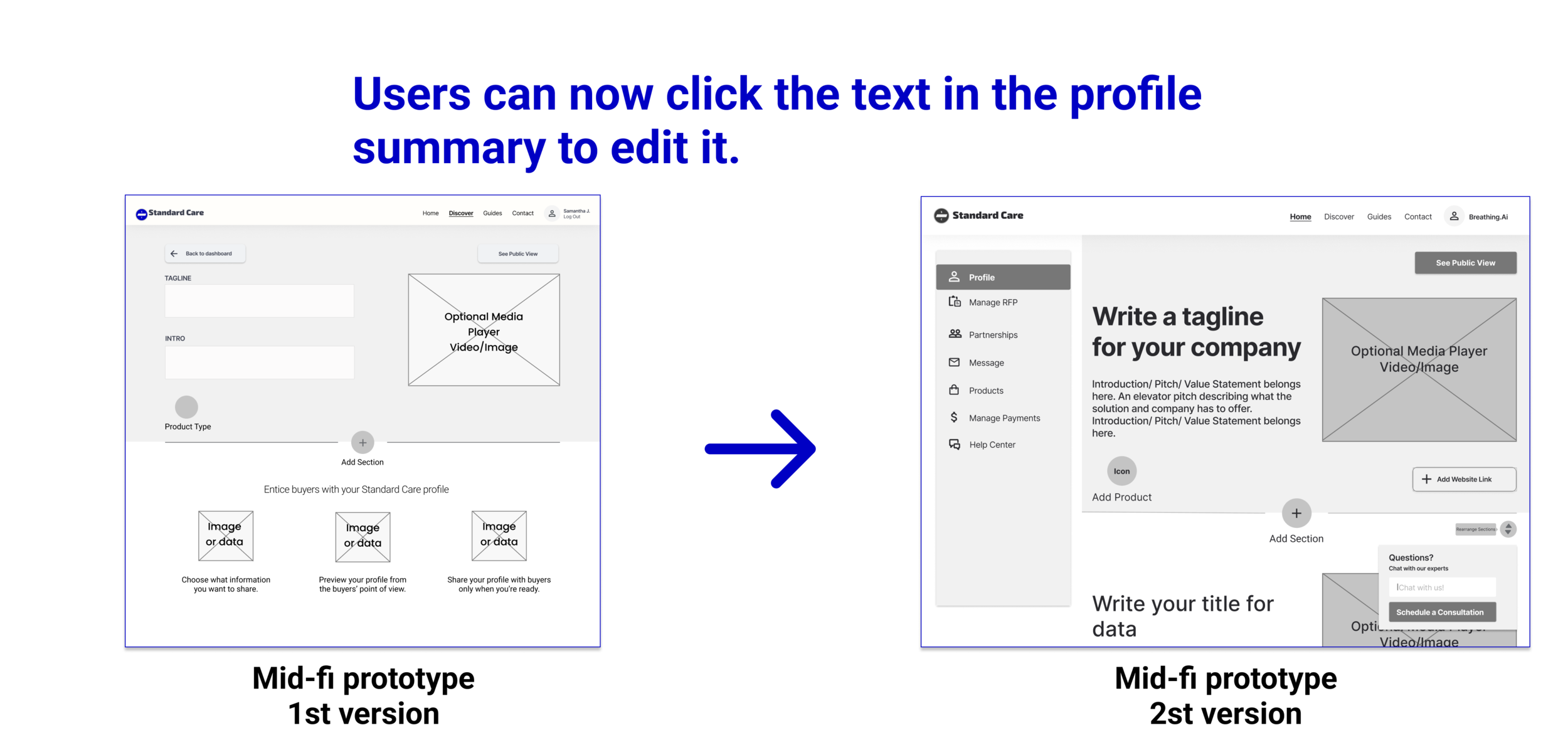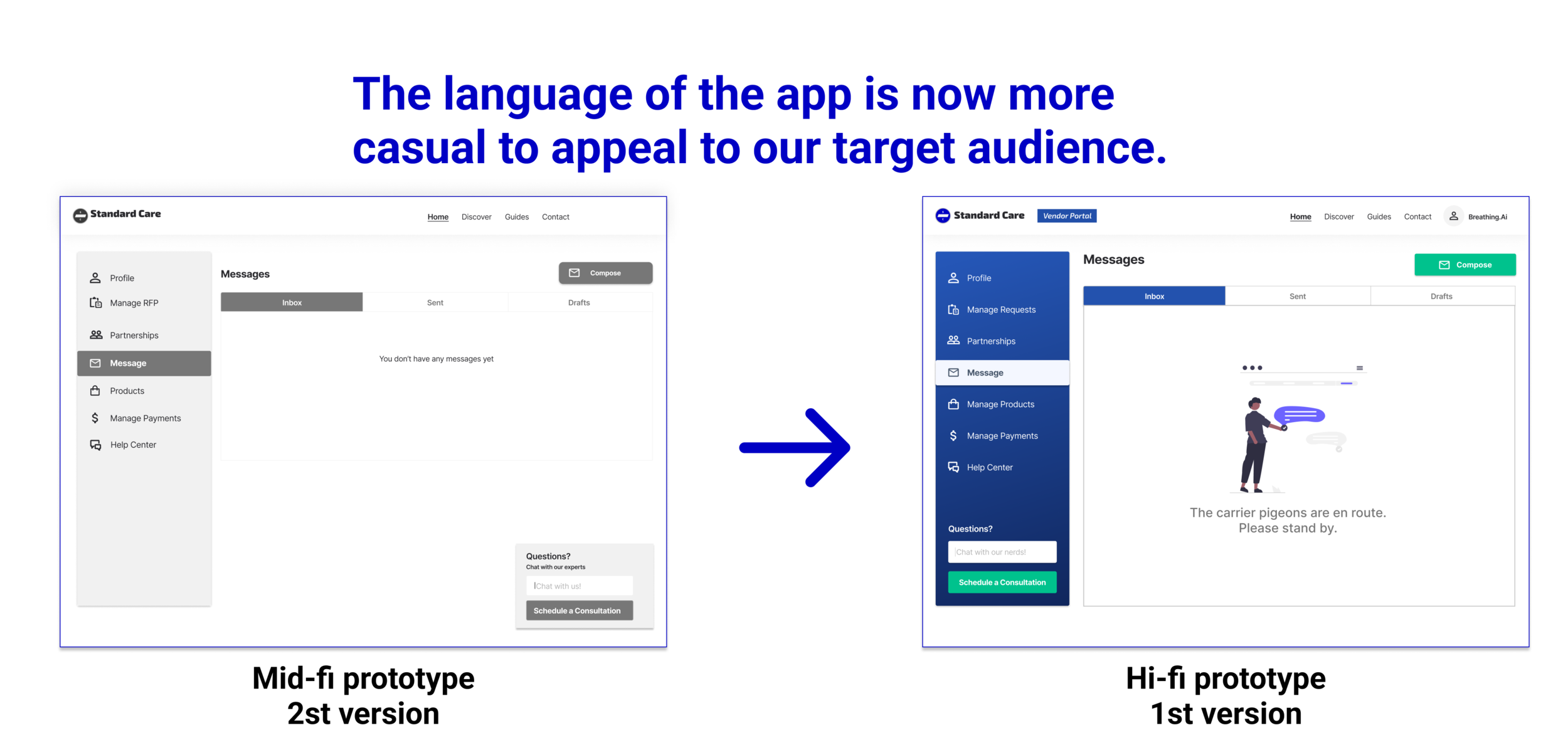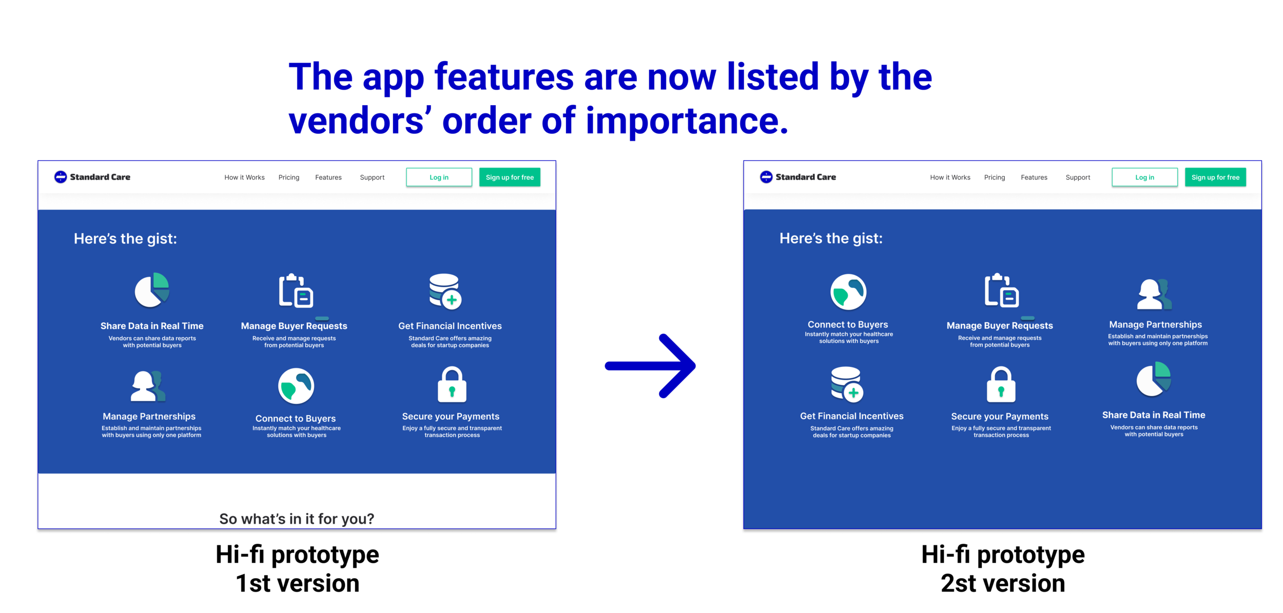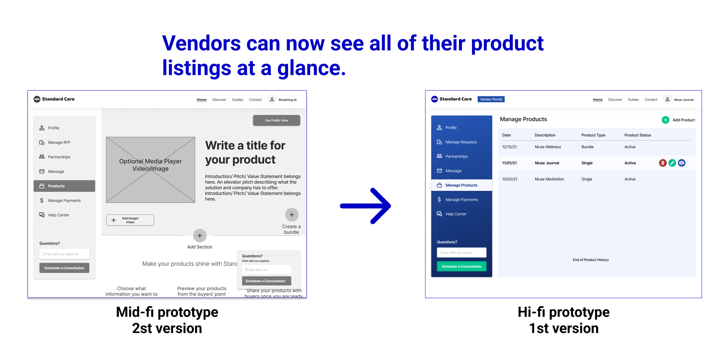 Since we were nearing the final deadline, it was time to tap into Standard Care’s small customer base to get valuable insights. Five health solutions vendors participated in 30 minute test sessions and the following changes were made.