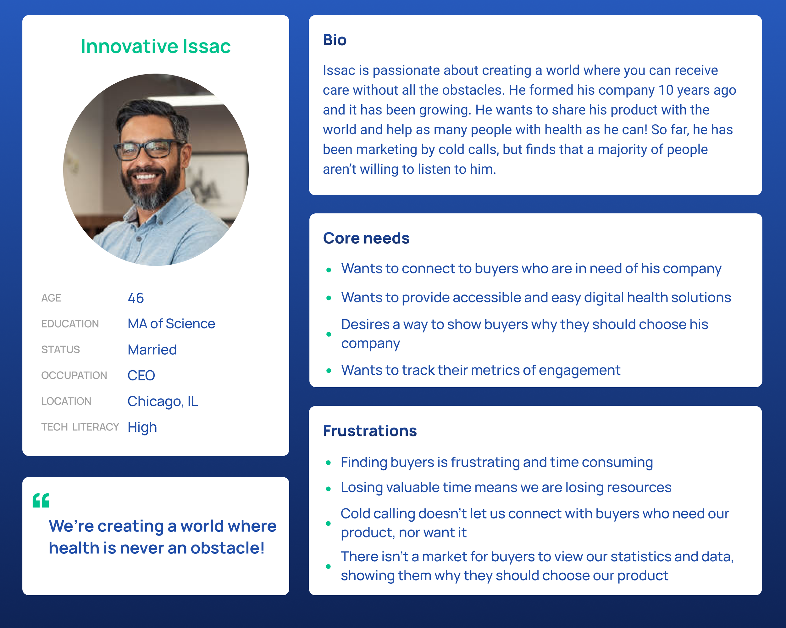 Meet Isaac, the representative of our health solutions providers.