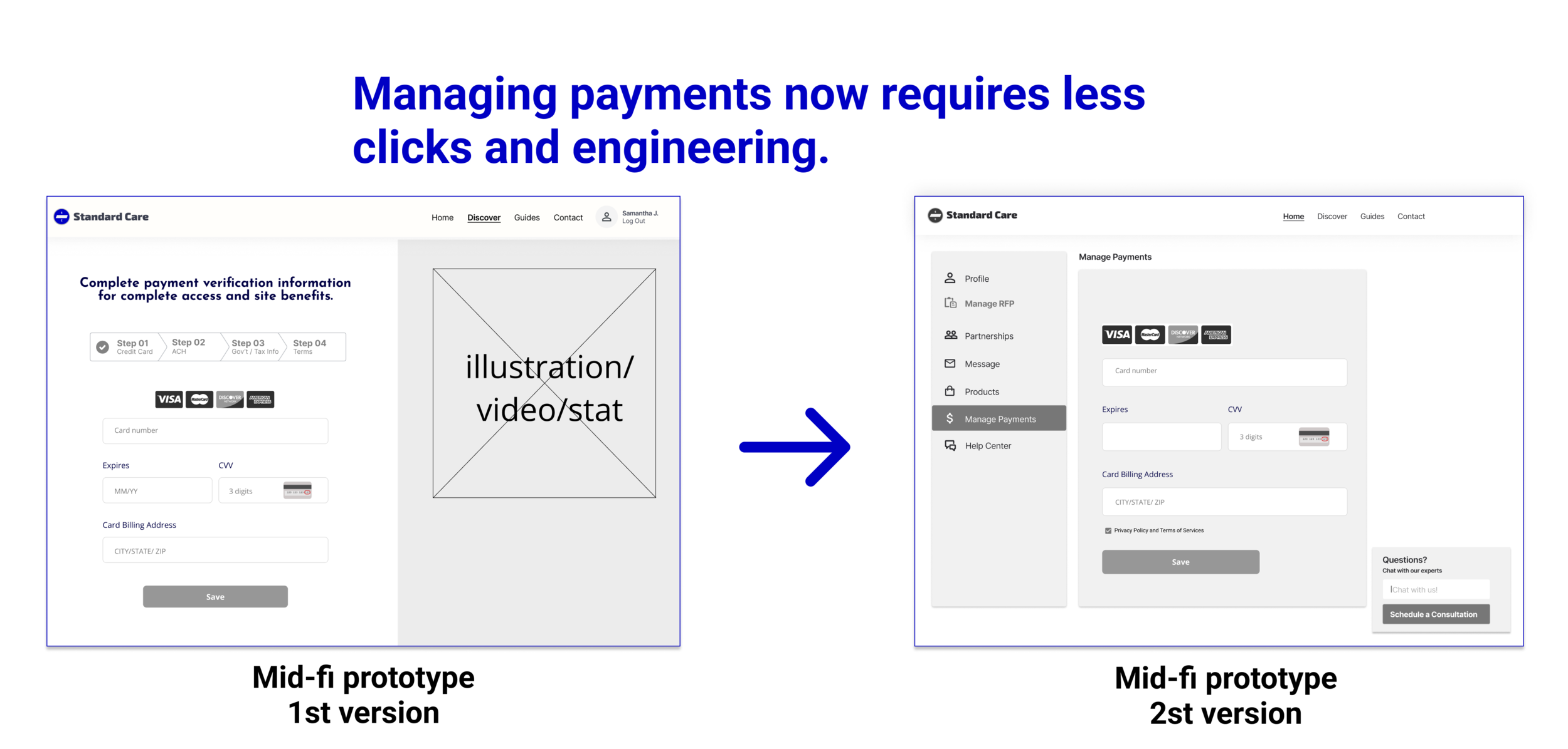 In this team project, I took on the role of UX designer & researcher for Standard Care, a startup healthcare company.
