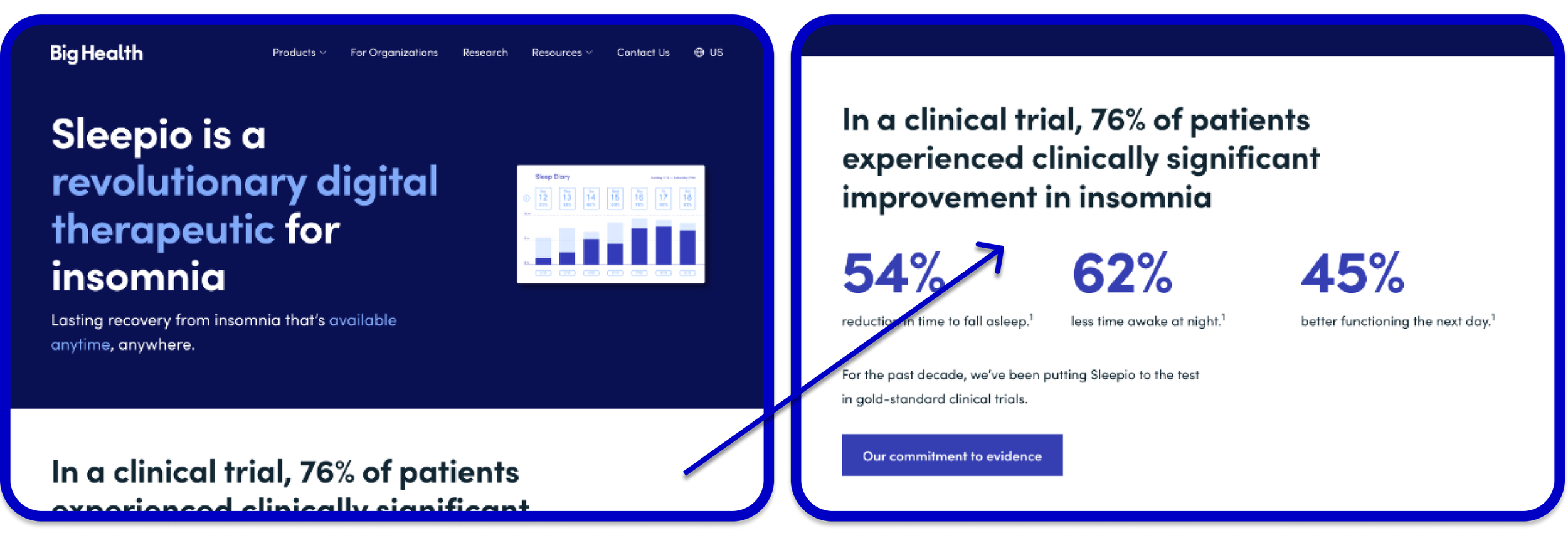 My team was at a loss for how to properly advertise the vendors' solutions until I stumbled upon Big Health. I really appreciated the playful, yet professional, language and fonts.