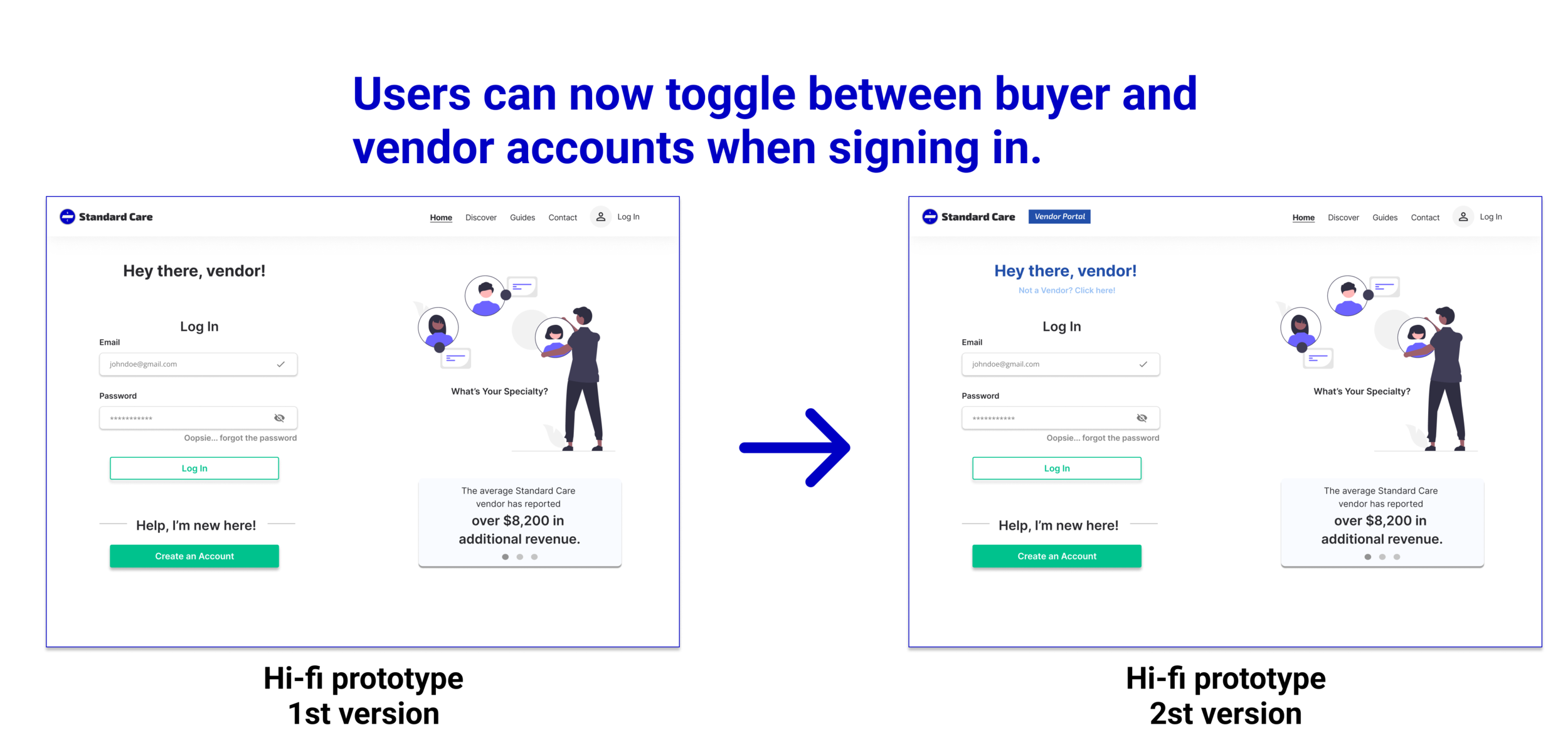 In order to make sure our prototype fit the brand, I turned to Standard Care's buyer portal for inspiration. My team borrowed the colors and layout for the vendors' side of the app.